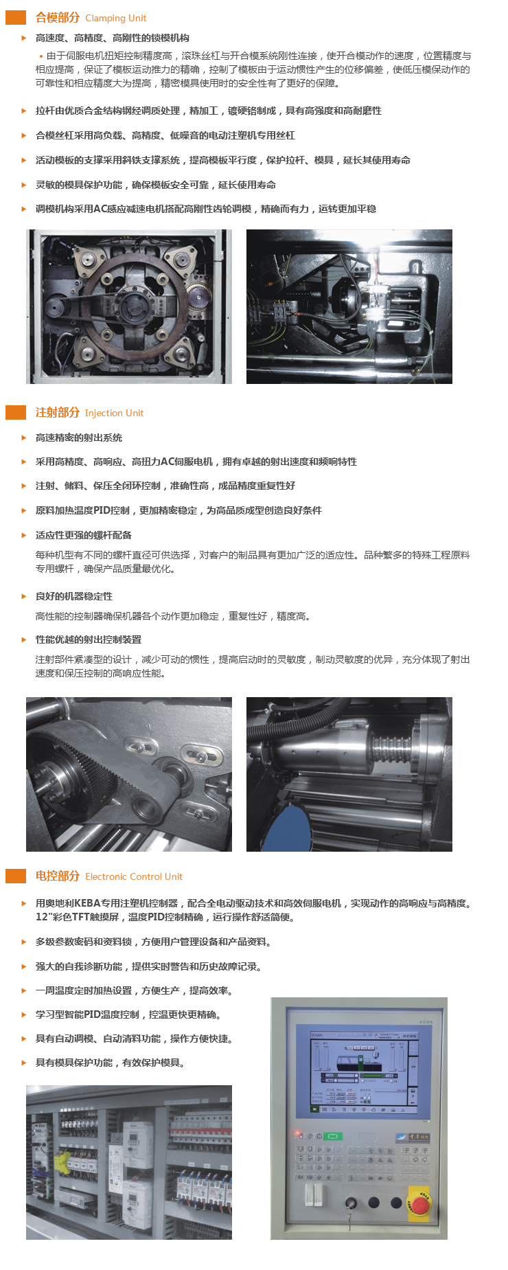 所有動(dòng)作均由電機(jī)驅(qū)動(dòng),取代了油壓系統(tǒng),無(wú)需液壓油,避免了漏油及油氣污染的問(wèn)題,因此車間環(huán)境更能保持清潔,適合高潔凈要求的產(chǎn)品和生產(chǎn)環(huán)境。